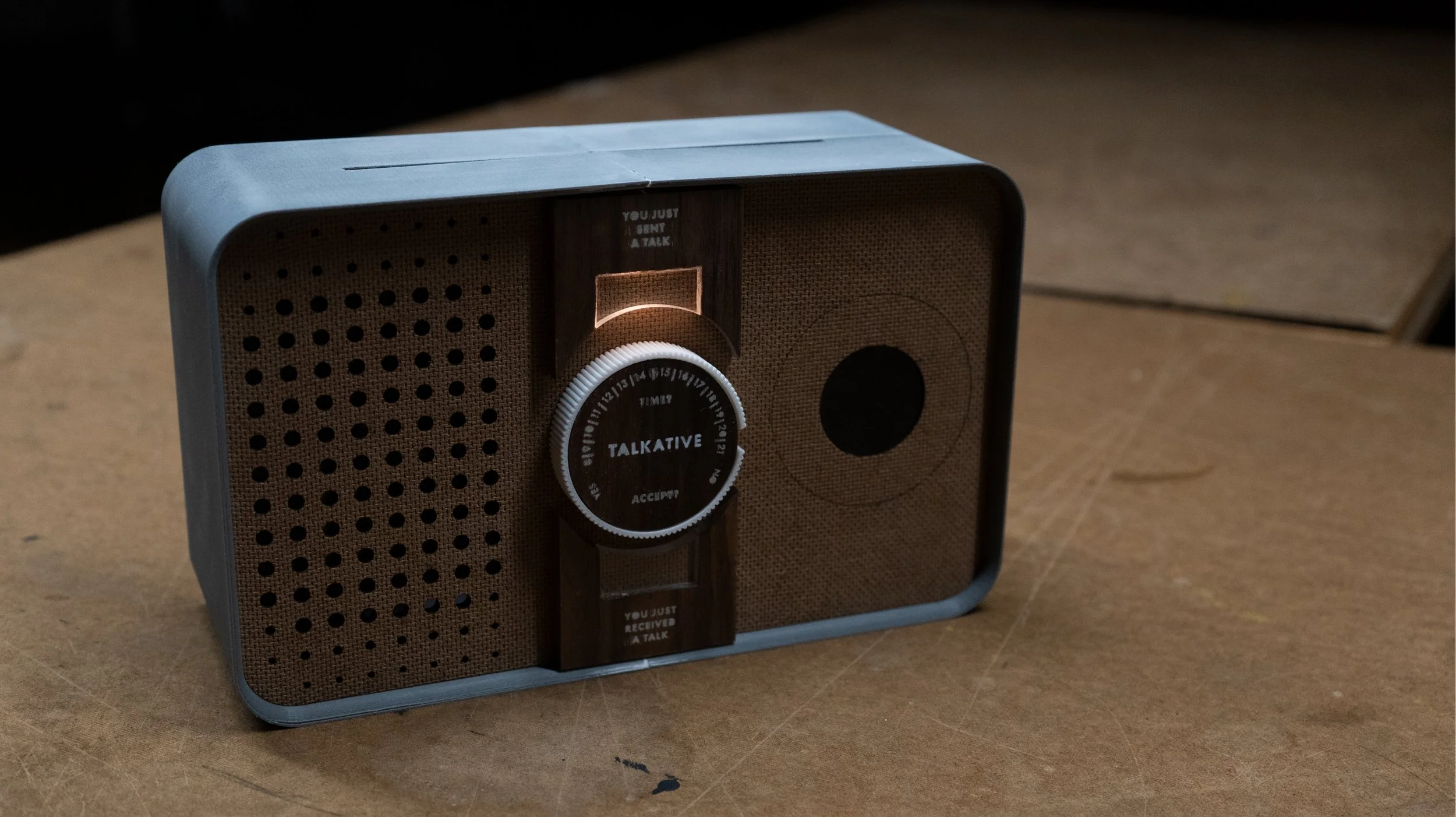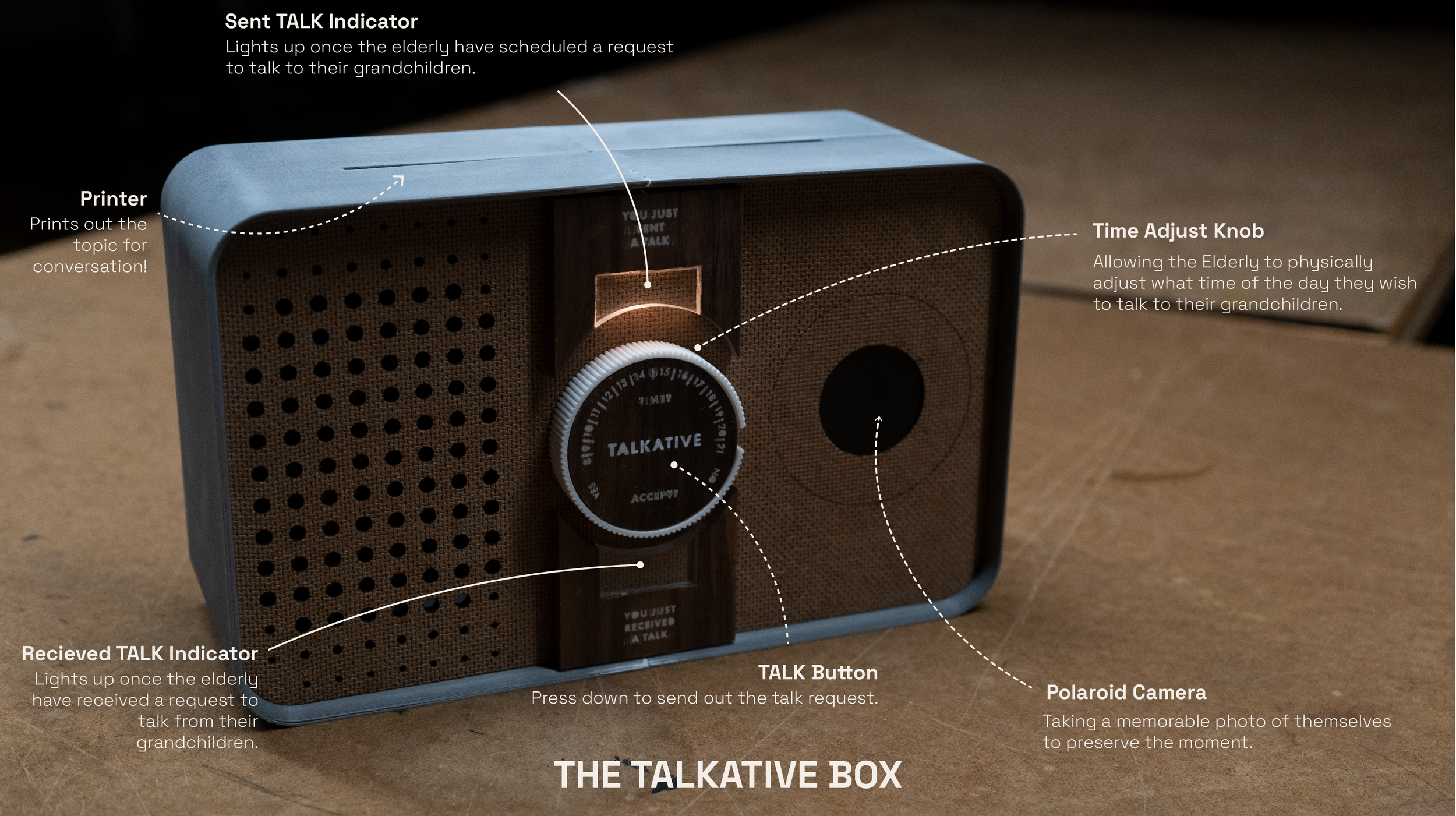 Talkative is a communication device designed to help grandparents have easy, interesting, and vibrant conversations with their grandchildren who are remote from them.